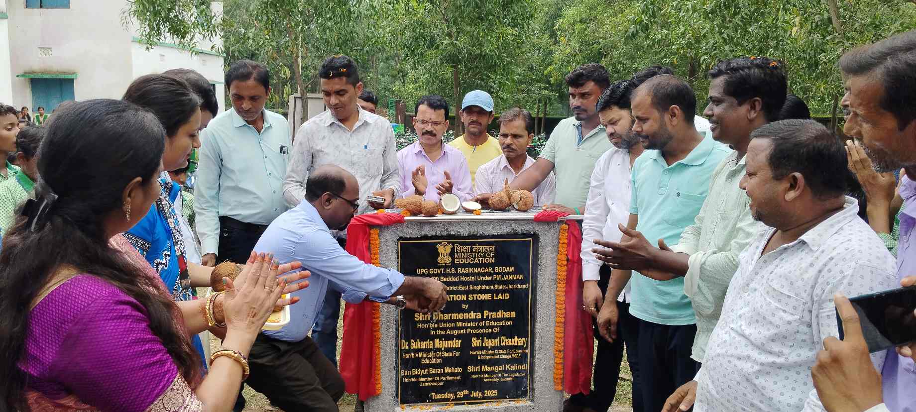 Patamda: शिक्षा विभाग द्वारा पीएम श्री विद्यालय के रूप में चयनित बोड़ाम प्रखंड के उत्क्रमित प्लस टू हाई स्कूल रसिकनगर में 100 बेड महिला छात्रावास का शिलान्यास मंगलवार को विधायक प्रतिनिधि के रूप में मौजूद माणिक चंद्र महतो ने नारियल फोड़कर किया। मौके पर बीडीओ किकू महतो, बीईईओ प्रभाकर कुमार, मुखिया प्रतिनिधि सनातन लाया, पंसस प्रतिनिधि संजय कुंभकार एवं प्राचार्य रंजना सिंह आदि ने भी नारियल फोड़ा और निर्माण कार्य का शुभारंभ किया।