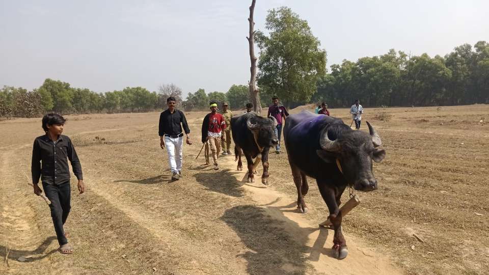पटमदा में चल रही थी प्रतिबंधित भैंसा लड़ाई, सीओ के पहुंचते ही मैदान हो गया खाली