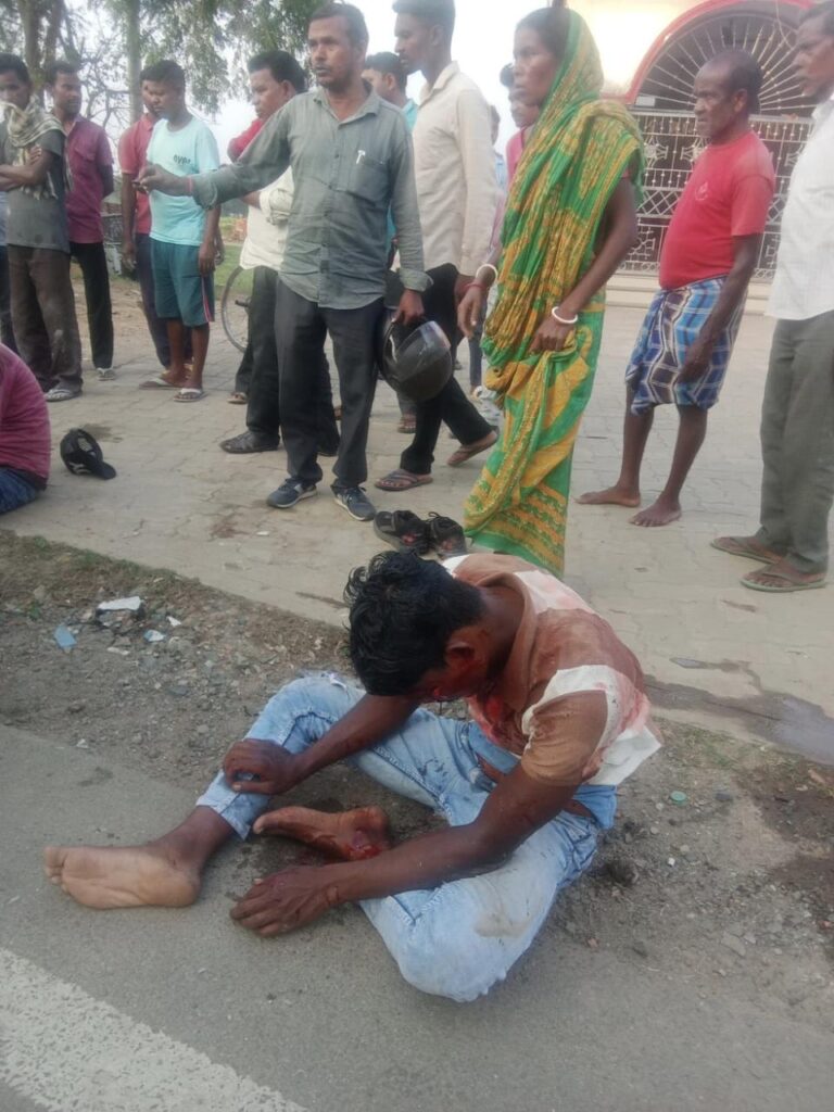 बांगुड़दा में ओवरटेक के चक्कर में फिल्मी स्टाइल में हुआ सड़क हादसा, बाइक सवार 3 युवक घायल, कार क्षतिग्रस्त
