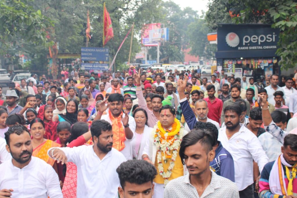 इससे पूर्व साकची आमबागान मैदान में उनके समर्थकों की भीड़ पूरे विधानसभा क्षेत्र से जुटी थी और वहां समर्थकों द्वारा भव्य स्वागत करने के पश्चात उन्होंने पदयात्रा करते हुए नामांकन को पहुंचे। मौके पर जेबीकेएसएस सुप्रीमो संजय मेहता जिंदाबाद, हमारा विधायक कैसा हो, विमल बैठा जैसा हो, नारे के साथ उत्साह दिखाते हुए शामिल हुए। मौके पर उनके साथ रेखा कालिंदी, संजीव दास, संजय दास, सुखमय डे, अजय महतो, देवेंद्र कुंभकार, विवेक सहिस, गुणधर दास, विमल रजक, सुनील रजक, बाबलू मिश्रा आदि मौजूद थे।