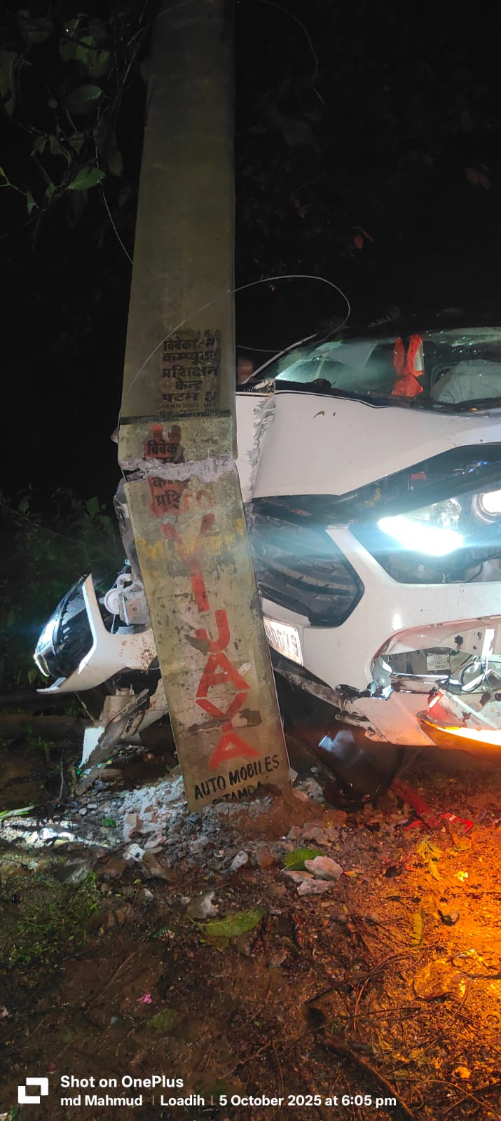 पटमदा के जाल्ला में अनियंत्रित कार ने 33 हजार खंभे को मारी टक्कर, बिजली गुल