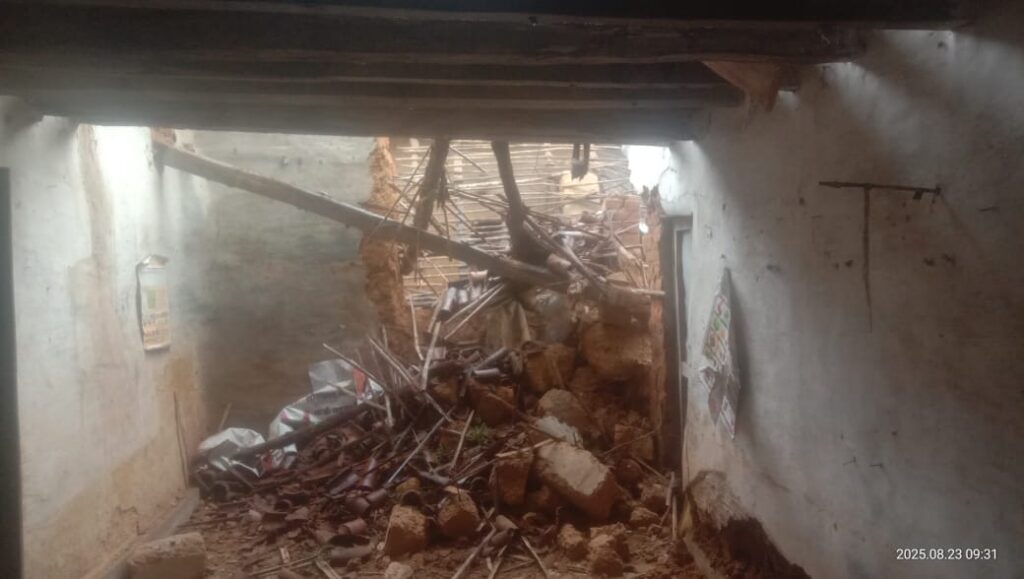 पटमदा के पाथरडीह गांव में मिट्टी के घर में चल रहा था आंगनबाड़ी केंद्र, भारी बारिश के कारण हुआ ध्वस्त
