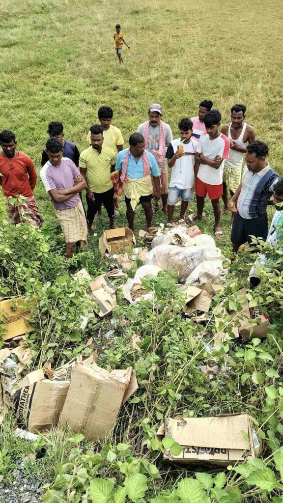 मौके पर पहुंचे ग्रामीणों में सुशील बेसरा, समीर टुडू, अरुण चंद्र मुर्मू, बहादुर टुडू, सूजन बेसरा व बीरबल मुर्मू ने दोपहर करीब 12 बजे तक मैदान के आसपास बिखरे पड़े कांच के टुकड़ों एवं बोतलों को हटा दिया है।