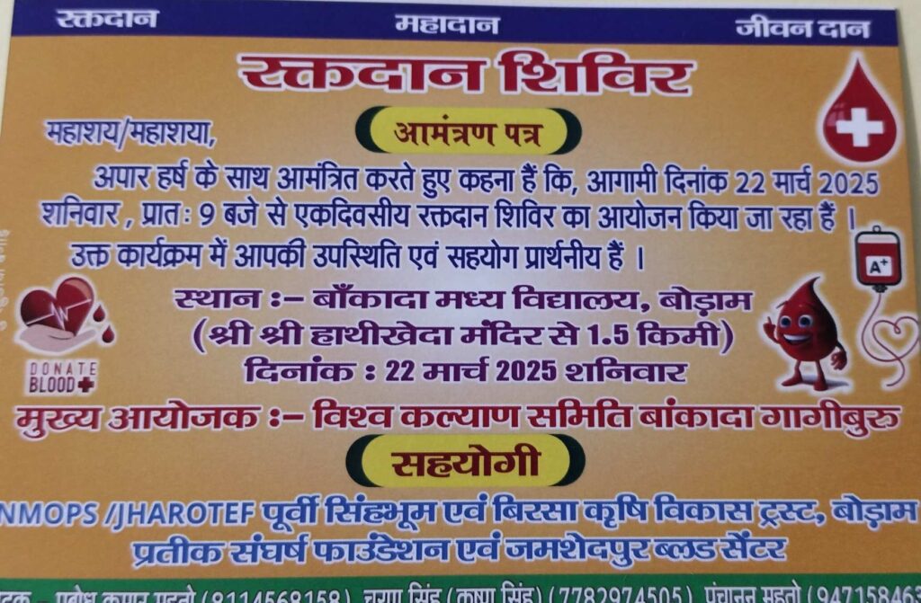 बोड़ाम के बांकादा में रक्तदान शिविर 22 को