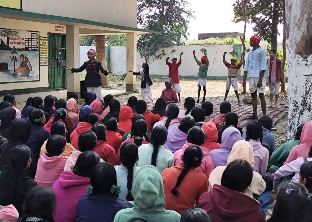 Patamda : पूर्वी सिंहभूम जिले के विद्यालयों में शनिवार को 2025 की आखिरी क्लास लगी, फिर विद्यालय शीतकालीन अवकाश के लिए बंद हो गए। छुट्टियों का सकारात्मक उपयोग बच्चे किताबें और कहानियां पढ़कर कर सकते है, इसी संदेश के साथ भारतीय जन नाट्य संघ से जुड़े लिटिल इप्टा के नौ बाल रंगकर्मी पटमदा के एसएस +2 उच्च विद्यालय पहुंचे। अपनी उम्र के बच्चों को बाल कलाकार के रूप में देखने विद्यालय के सैकड़ों बच्चे विद्यालय प्रागंण में ही स्थित अम्बेडकर भवन के पास जुटे हुए थे। नन्हें बाल रंगकर्मी साहिल, दिव्या, नम्रता, गुंजन, अभिषेक, सुरभि, सुजल, काव्या और श्रवण की टोली ने शुरुआत में संथाली लोकगीत सुनाकर कार्यक्रम की शुरुआत की, फिर हिंदी भाषा के जनवादी गीतों के माध्यम से समाज में बराबरी और समानता का सन्देश दिया। बच्चों के गीतों को सुनकर सभी मंत्रमुग्ध थे, उसके बाद बच्चों ने अफ्रीकी लोककथा “लोहे का आदमी” का मंचन किया, जिसका हिंदी रूपांतरण मशहूर कवि मंगलेश डबराल ने किया है।