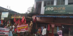 Patamda: सीपीएम के कार्यकर्ताओं ने बुधवार को किसान सभा के जिलाध्यक्ष कॉमरेड लोटन दास के नेतृत्व में बोड़ाम बाजार में जुलूस निकाल कर झारखंड ग्रामीण बैंक एवं बैंक ऑफ इंडिया की शाखाओं को बंद कराया। हाथों में तख्तियां लेकर महिला व पुरुष कार्यकर्ताओं ने पूरे बोड़ाम बाजार का भ्रमण किया और केंद्र सरकार के खिलाफ जमकर नारेबाजी की। जिलाध्यक्ष ने कहा कि केंद्र सरकार की मजदूर विरोधी, किसान विरोधी और कार्पोरेट समर्थक नीतियों का विरोध कर रहे हैं। उन्होंने कहा कि ये फ़ैसले मजदूरों और किसानों के लिए अच्छे नहीं हैं, केंद्र सरकार चंद पूंजीपतियों के हित में कानून लागू करने का प्रयास कर रही है। इस दौरान जिलाध्यक्ष लोटन दास, माणिक महतो, गुरुपद महतो, डोमन महतो, निरंजन रु, सत्येन, बंकिम, हाबू, शान्तिराम, तरनी, तारामणि, नियति समेत अन्य कई लोग मौजूद थे।