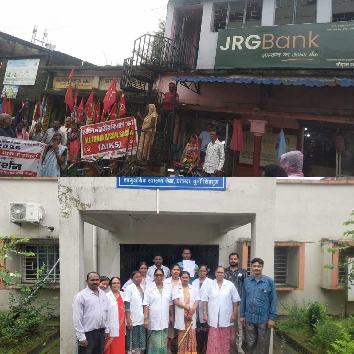 दूसरी ओर अखिल भारतीय कर्मचारी महासंघ के आह्वान पर बुधवार को सामुदायिक स्वास्थ्य केंद्र, पटमदा के कर्मचारियों ने भी देशव्यापी सामूहिक हड़ताल का समर्थन किया। एएनएम हेमंती कुमारी के नेतृत्व में अन्य कर्मचारियों ने केंद्र सरकार की कथित गलत नीतियों का विरोध किया। आंदोलन में मुख्य रूप से हेमंती कुमारी, निर्मला बी, मीणा कुमारी, सुमित्रा मुदी, सुमन कुमारी, ललिता कुमारी, चंदन गोराई, विप्लव कुमार दत्त, भूपेश प्रमाणिक, खगेन उरांव, आनंद कुमार, चन्दना कुमारी आदि शामिल थे।