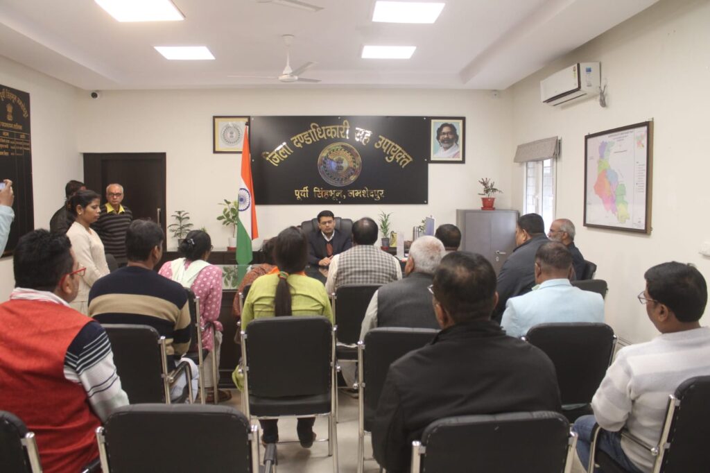 शुक्रवार को जमशेदपुर स्थित अपने कार्यालय में लोगों की समस्याएं सुनते उपायुक्त अनन्य मित्तल।