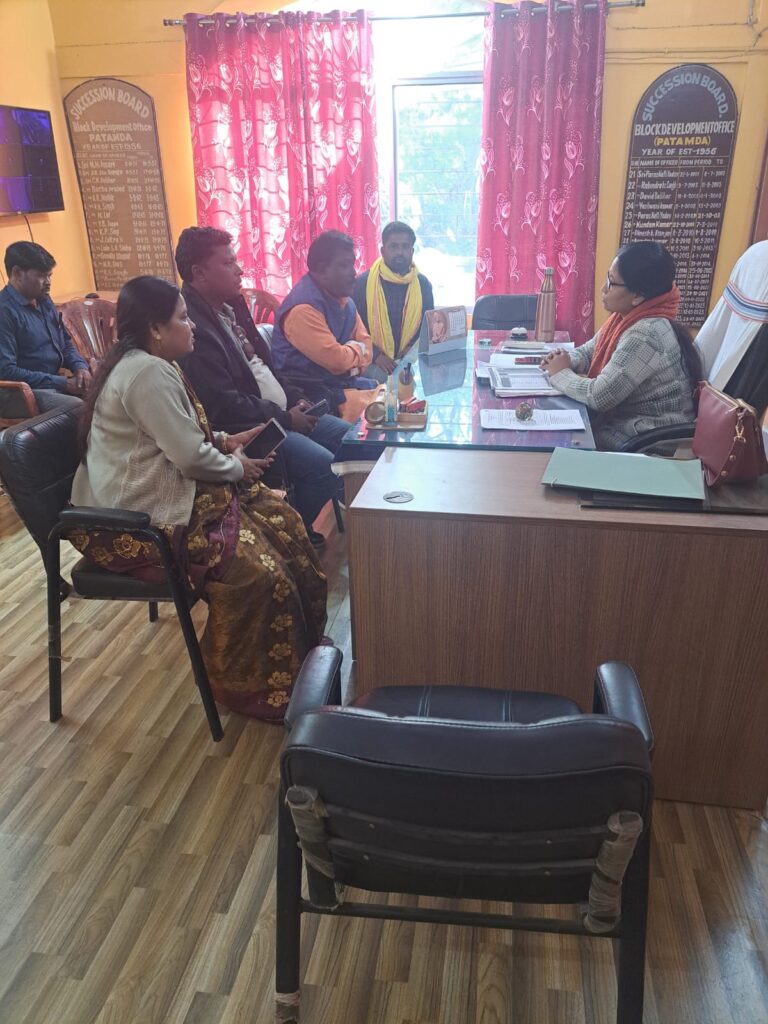 Patamda : पटमदा-02 के जिला परिषद सदस्य खगेन चंद्र महतो ने शुक्रवार को पटमदा बीडीओ शशि नीलिमा डुंगडुंग से कार्यालय में मुलाकात कर शिकायत करते हुए कहा कि राज्य सरकार के द्वारा केसीसी ऋण माफी योजना के तहत किसानों का ऋण माफी किए जाने के बावजूद बैंक ऑफ इंडिया काटिन शाखा प्रबंधक के द्वारा लाभुकों को नोटिस भेजा गया है। इसके कारण किसानों में भ्रम की स्थिति है। उन्होंने कहा कि बैंक ऑफ इंडिया पटमदा व काटिन शाखा में केवाइसी फार्म भरने के लिए ग्राहकों की लंबी कतार लगती हैं। जिससे लोगों को काफी दिक्कतों का सामना करना पड़ता है। उन्होंने इस मामले में बीडीओ से समाधान करने की मांग की। इसके अलावा क्षेत्र में संचालित विभिन्न सरकारी योजनाओं की जानकारी प्राप्त की।