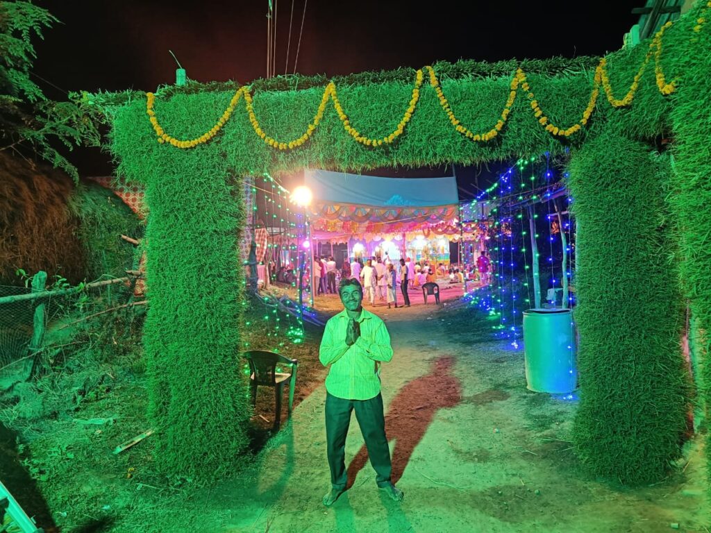 रसिकनगर नामोपाड़ा में आयोजित हरिनाम संकीर्तन में उमड़े श्रद्धालु, घास का गेट बना आकर्षण का केंद्र