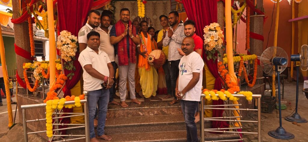 Jamshedpur: जमशेदपुर के बिरसानगर थाना अंतर्गत मोहरदा गांव में श्री श्री सार्वजानिक राधा कृष्ण अखंड हरिनाम संकीर्तन समिति की ओर से आयोजित 24 प्रहर अखंड संकीर्तन में बुधवार को झारखंड मुक्ति मोर्चा के युवा नेता महाबीर मुर्मू शामिल हुए। उन्होंने भगवान राधा गोविन्द की मूर्ति पर पूजा-अर्चना कर क्षेत्र एवं समस्त झारखंड वासियों के लिए सुख समृद्धि एवं उन्नति के लिए मंगल कामना की।