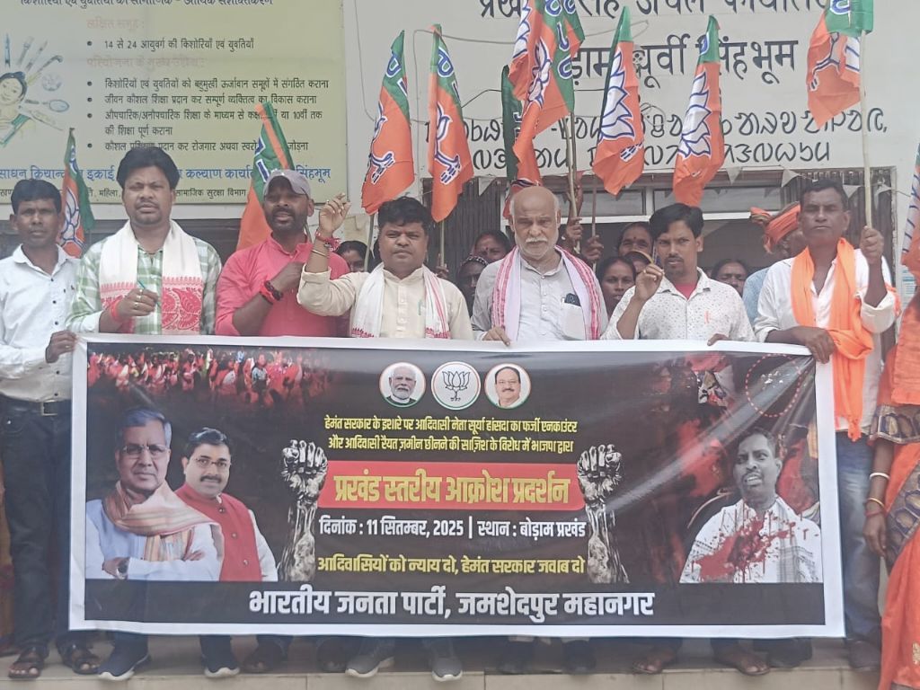 Patamda : भाजपा के बोड़ाम मंडल अध्यक्ष शांतनु मुखर्जी के नेतृत्व में गुरुवार को बोड़ाम प्रखंड मुख्यालय में कार्यकर्ताओं ने जोरदार प्रदर्शन किया। मौके पर कार्यक्रम के प्रभारी वरिष्ठ भाजपा नेता जटाशंकर पाण्डेय ने कहा कि राज्य की हेमंत सोरेन सरकार हर मोर्चे पर विफल है और इसे सत्ता में बने रहने का कोई हक नहीं है। उन्होंने आरोप लगाया कि राज्य में सामाजिक कार्यकर्ता की हत्या हो रही है, महिलाओं के साथ दुष्कर्म की घटनाएं हो रही हैं, गांवों के किसान लुटे जा रहे हैं। उन्होंने सूर्या हांसदा की संदिग्ध हत्या की सीबीआई जांच कराने एवं रांची के नगड़ी में गरीब आदिवासियों की जमीनों को राज्य सरकार द्वारा हड़पने का आरोप लगाया।