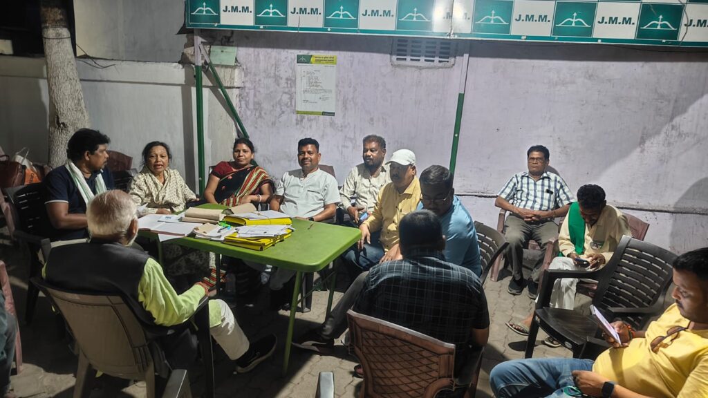 Jamshedpur : झामुमो के पूर्वी सिंहभूम जिला संयोजक मंडली के प्रमुख बाघराय मार्डी द्वारा गुरुवार को जमशेदपुर स्थित जिला कार्यालय में एक बैठक कर विभिन्न प्रखंडों एवं नगर क्षेत्र के कमेटियों का पुनर्गठन हेतु तिथियों का निर्धारण किया गया। साथ ही सभी प्रखंडों एवं नगर क्षेत्रों के लिए पर्यवेक्षकों की नियुक्ति भी की गई। इसकी जानकारी देते हुए संयोजक मंडली के सदस्य पिंटू दत्ता ने बताया कि 28 मार्च को बहरागोड़ा प्रखंड का सम्मेलन पर्यवेक्षक सुनील महतो एवं पिंटू दत्ता की उपस्थिति में आयोजित होगा। इसी तरह डुमरिया में पर्यवेक्षक सागेन पूर्ति व हीरामणि मुर्मू एवं उसी दिन मुसाबनी प्रखंड का सम्मेलन पर्यवेक्षक आदित्य प्रधान एवं घनश्याम महतो की उपस्थिति में आयोजित होगा।