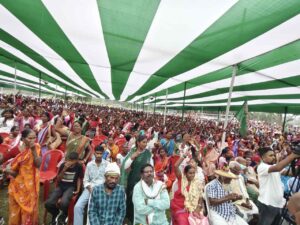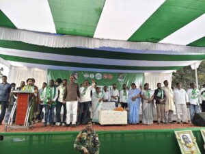 Gurabanda/Jamshedpur : स्व रामदास सोरेन विधायक से पहले माझी बाबा थे और झारखंडी आदिवासी समाज में यह बड़ा पद होता है। वह हमेशा समाज को एकजुट रखने काम किए। उन्होंने दिशोम गुरु शिबू सोरेन के साथ जल जंगल जमीन की रक्षा एवं झारखंड अलग राज्य के लिए लड़ाई लड़ी। गुरुजी के निधन के कुछ दिनों के अंदर ही रामदास दा भी हम सभी को छोड़कर चल बसे। गुरु – शिष्य एक साथ भगवान के पास चले गए। यह बातें मंगलवार को झामुमो की स्टार प्रचारक सह गांडेय की विधायक कल्पना मुर्मू सोरेन ने घाटशिला विधानसभा क्षेत्र अंतर्गत गालूडीह एवं गुड़ाबांदा प्रखंड के जयघंटपुर फुटबॉल मैदान में आयोजित चुनावी सभा को संबोधित करते हुए कहीं। उन्होंने स्व. रामदास सोरेन की उपलब्धियों का उल्लेख करते हुए उनके पुत्र सोमेश सोरेन को तीर धनुष निशान पर वोट देकर जिताने की अपील की।