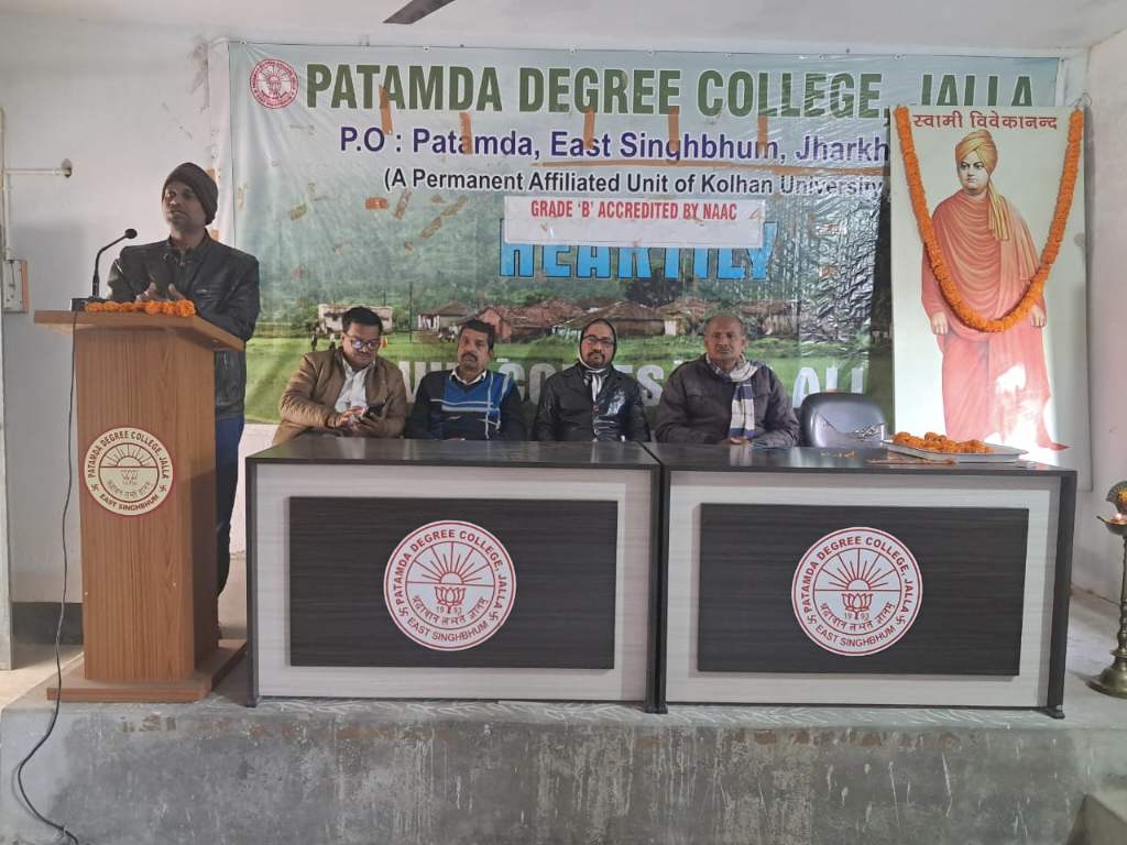 Patamda: पटमदा डिग्री कॉलेज जाल्ला के सभागार में सोमवार को स्वामी विवेकानंद जयंती सह राष्ट्रीय युवा दिवस कार्यक्रम का आयोजन किया गया। इसी के साथ एक सप्ताह तक चलने वाले युवा सप्ताह का शुभारम्भ भी हुआ। मौके पर पटमदा डिग्री कॉलेज जाल्ला के प्रभारी प्राचार्य कृष्णपद महतो ने स्वामी विवेकानंद जी की तस्वीर पर माल्यार्पण एवं दीप प्रज्वलित कर शुभारंभ किया।