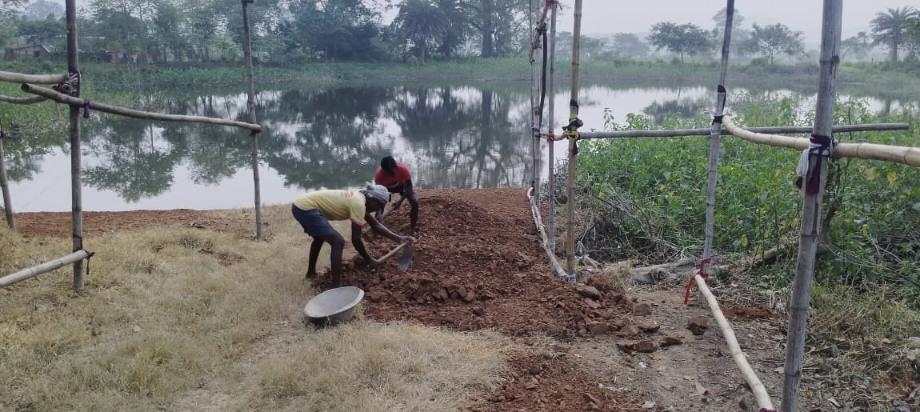 छठ घाट को दुरुस्त करने में जुटे पूजा समिति के लोग