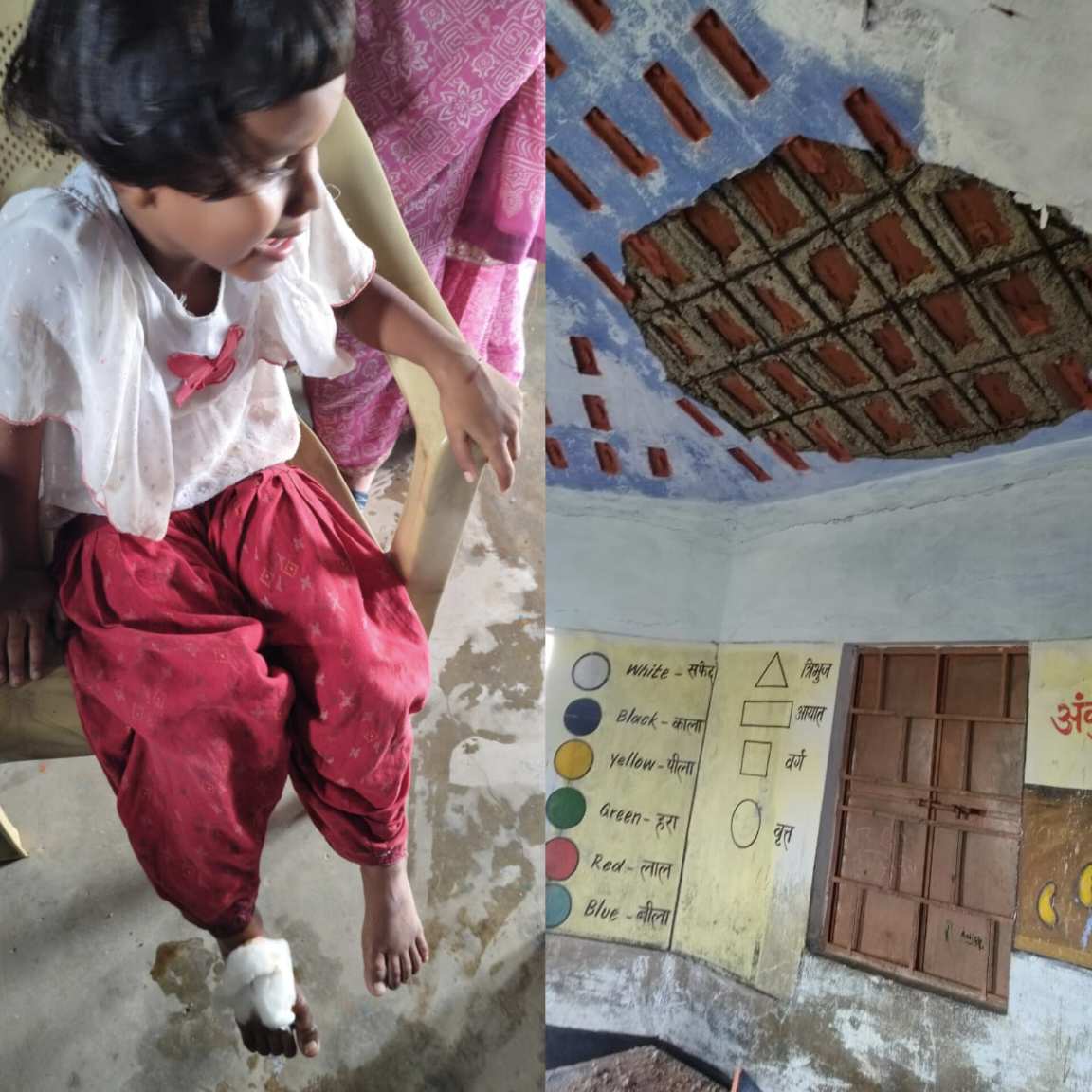 बोड़ाम के डीपीईपी स्कूल में जर्जर भवन की छत से प्लास्टर गिरा, एक बच्ची घायल