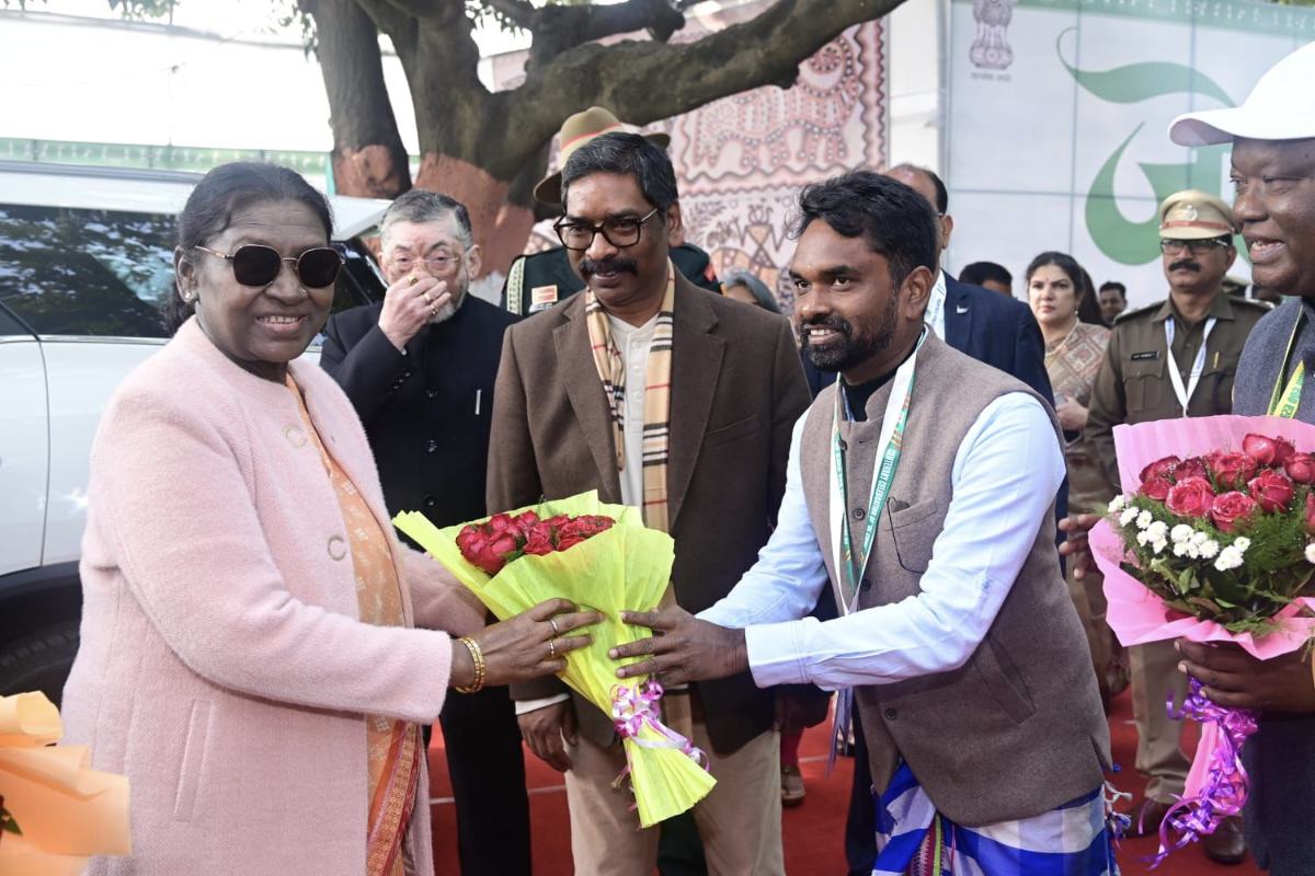 Jamshedpur : पोटका विधानसभा क्षेत्र अंतर्गत करनडीह स्थित दिशोम जाहेर में आयोजित 22वें संताली पारसी माहा एवं ओलचिकी लिपि के शताब्दी वर्ष समारोह के अवसर पर सोमवार को देश की महामहिम राष्ट्रपति द्रौपदी मुर्मू का कमेटी की ओर से भव्य स्वागत एवं अभिनंदन किया गया। इस ऐतिहासिक अवसर पर स्थानीय विधायक संजीव सरदार ने राष्ट्रपति का पुष्प गुच्छ देकर स्वागत किया। समारोह में राज्यपाल संतोष गंगवार, मुख्यमंत्री हेमंत सोरेन मुख्य रूप से उपस्थित थे और उन्होंने भी राष्ट्रपति मुर्मू का स्वागत किया।