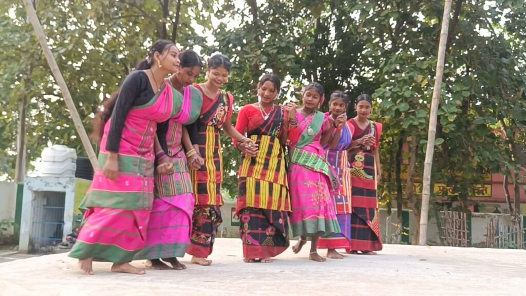 एसएस प्लस टू हाई स्कूल पटमदा में स्थानीय जनजातीय नृत्य की प्रस्तुति