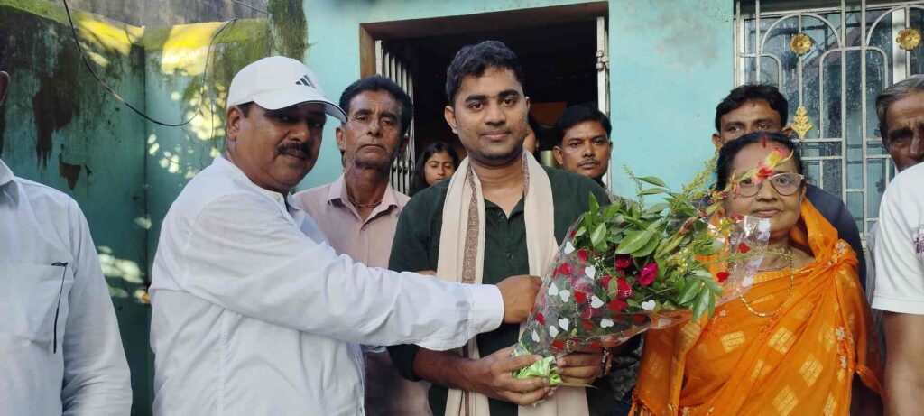 बोड़ाम के शांतनु मोदक को पार्षद प्रतिनिधि पिंटू दत्ता ने किया सम्मानित, माता-पिता से लिया आशीर्वाद