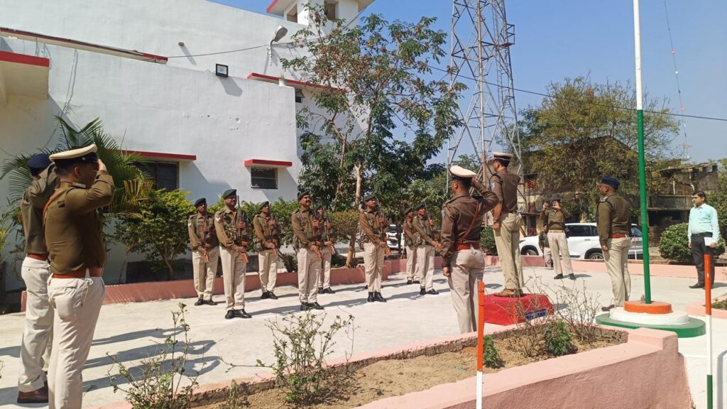गुड़ाबांदा थाना परिसर में गार्ड ऑफ ऑनर लेते एसएसपी किशोर कौशल।