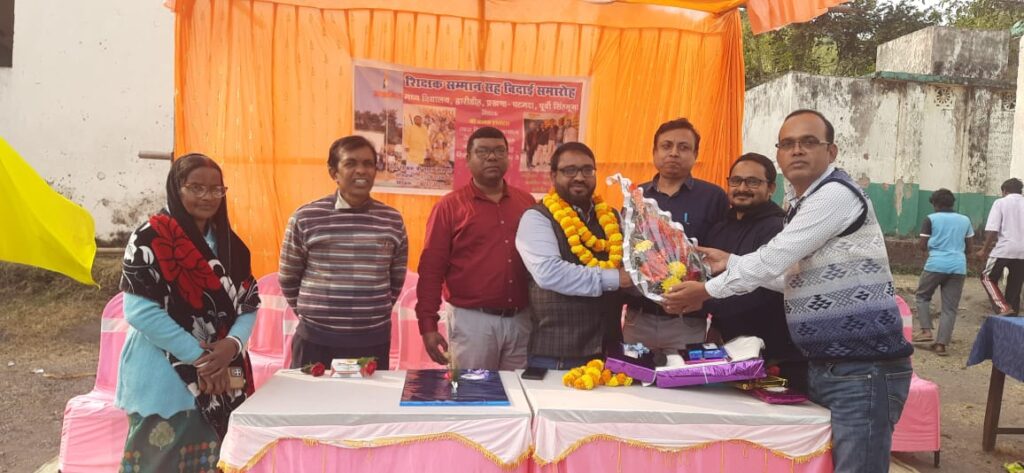 द्वारीडीह उत्क्रमित मध्य विद्यालय के पूर्व पारा शिक्षक तापस हालदार को दी गई समारोह पूर्वक विदाई