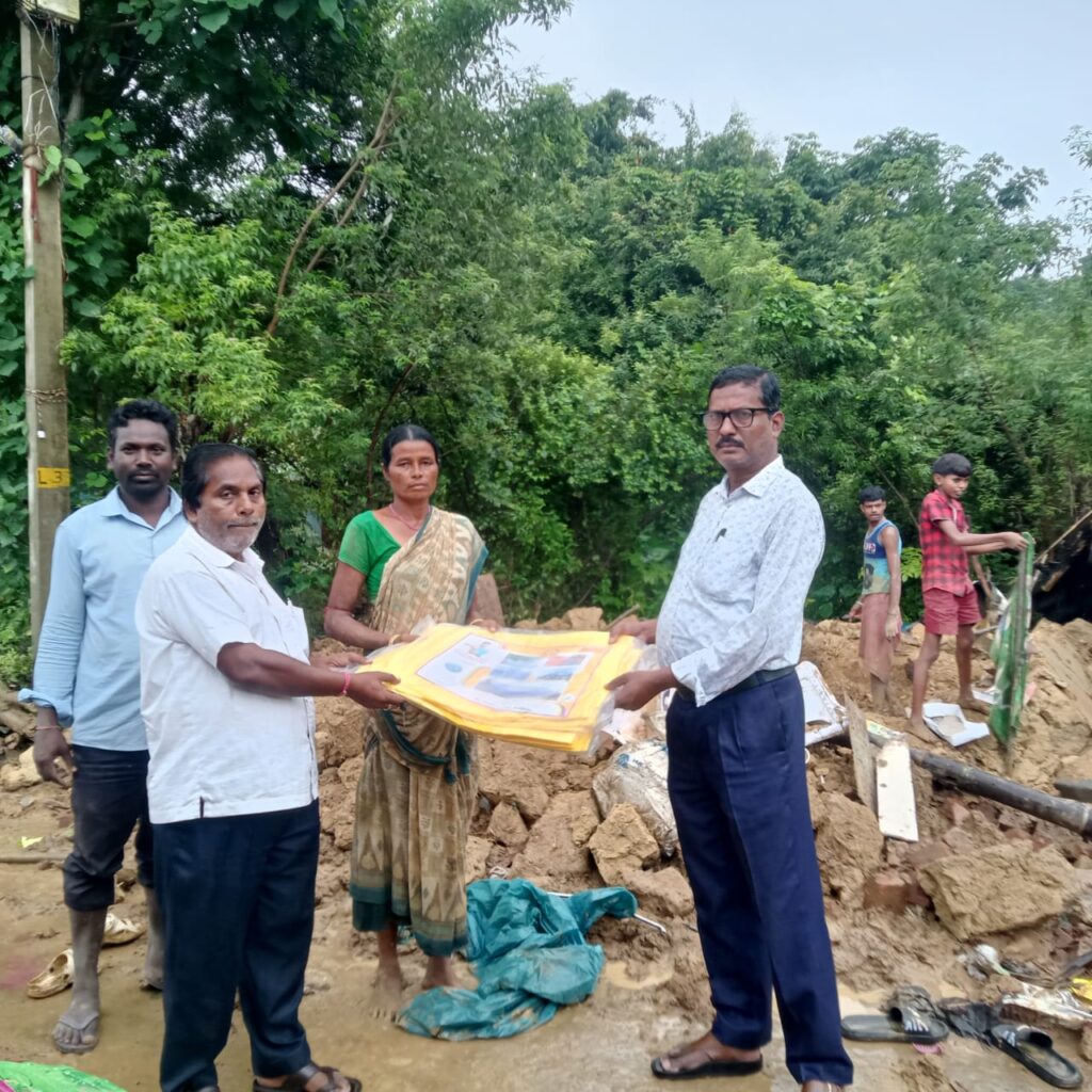 पटमदा में आपदा प्रभावित दो परिवारों को दिया गया तिरपाल