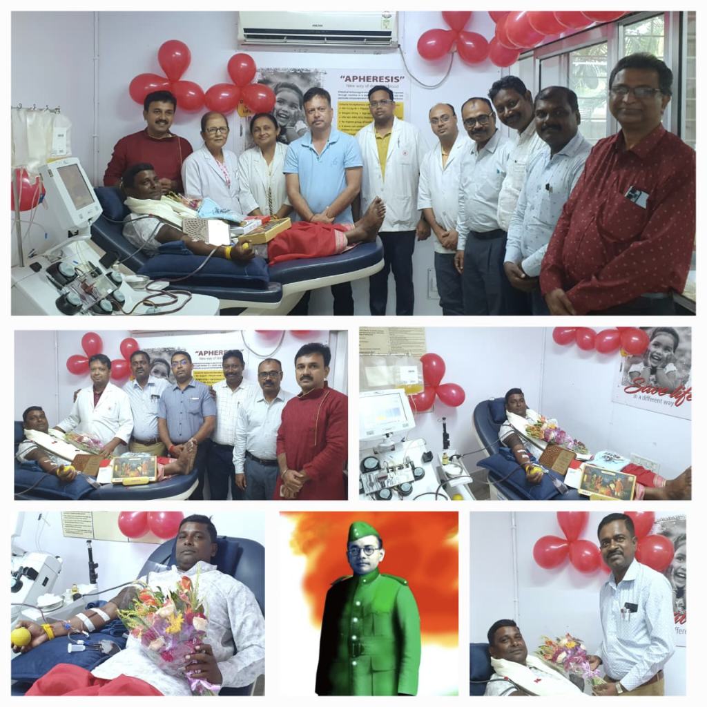 Jamshedpur: एक ओर जहां पर्व त्योहारों का समय चल रहा है एवं पूरा देश आईएनए डे सेलिब्रेट कर रहा है वहीं प्रतीक संघर्ष फाउंडेशन यानी टीम पीएसएफ ने अपने सदस्य उत्तम कुमार गोराई के जरिए शहर को एक और शतकवीर रक्तदाता दिया। मंगलवार को जमशेदपुर ब्लड सेंटर के आह्वान पर गम्भीर बीमारी से जंग लड़ रहे एक जरुरतमंद के लिए अपना एसडीपी रक्तदान के जरिए शतकीय पारी को पूरा कर लिया।