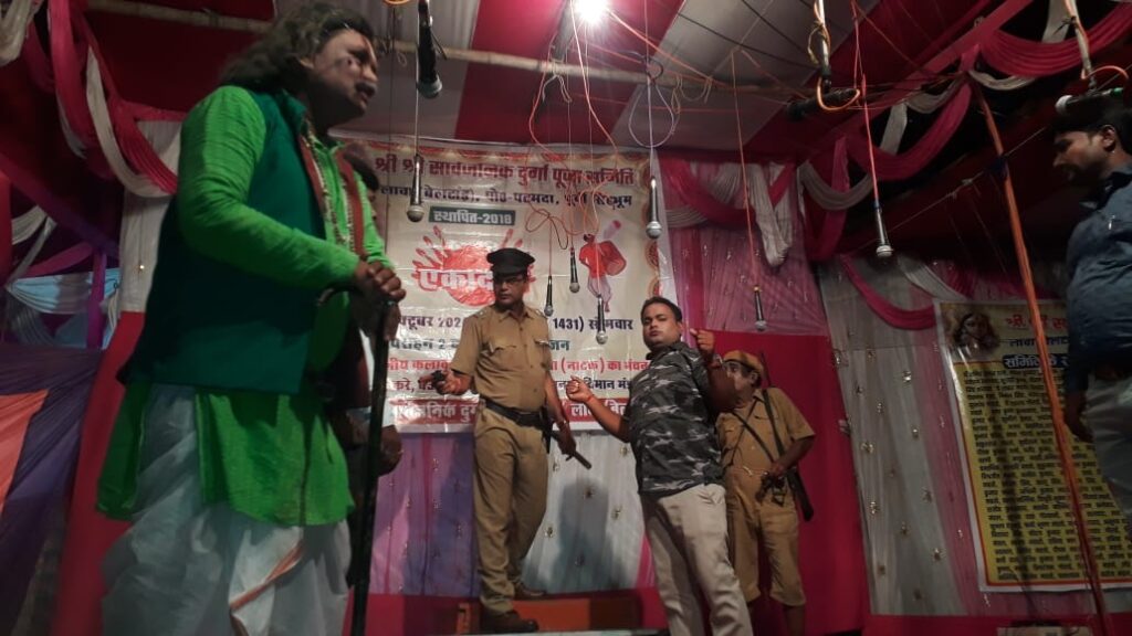 Patamda: श्री श्री सार्वजनिक दुर्गा पूजा समिति लावा (बेलटांड़) की ओर से दुर्गा पूजा के उपलक्ष्य में सोमवार की रात करीब 10 बजे से बेलटांड़ में आयोजित बांग्ला जात्रा में हजारों की संख्या में दर्शकों की भीड़ उमड़ी। “मां रेखेछी मायने करे, बऊ रेखेछी पाये धरे” (एक गुलाम पति ने मां को बनाया नौकरानी) की सामाजिक कहानी एक परिवार पर आधारित होने की वजह से खासकर महिलाओं को यह नाटक खूब पसंद आया।