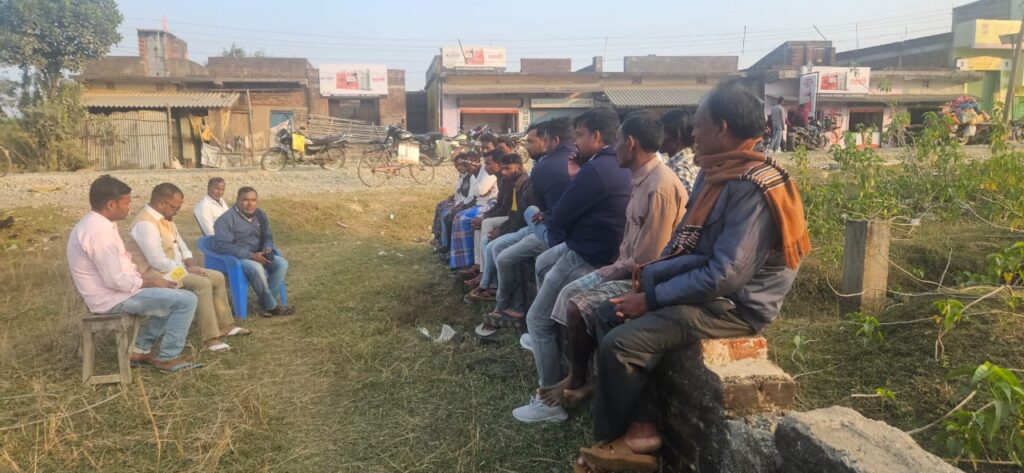 रविवार को मुकरूडीह मोड़ पर ग्रामीणों के साथ चर्चा करते स्वपन महतो।