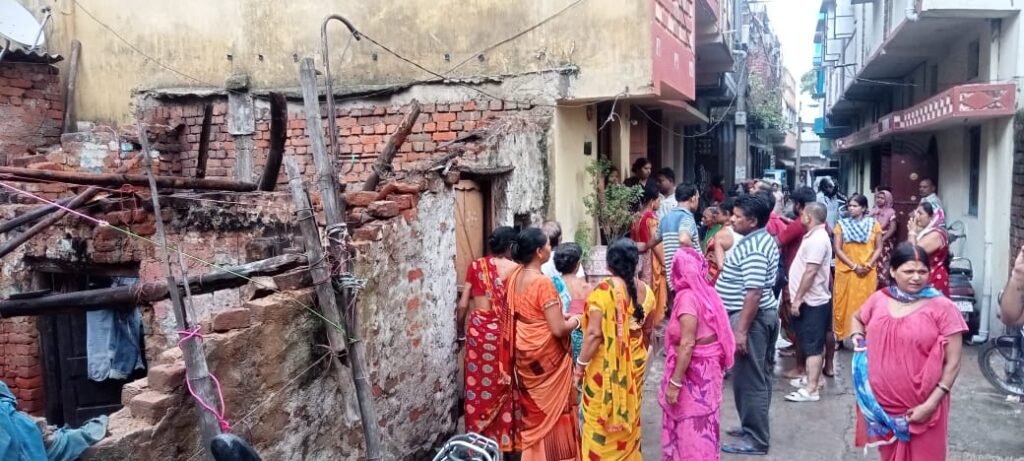 इस घटना में बुजुर्ग महिला रेणुका दास (82 वर्ष) एवं उनके पुत्रों विनोद दास (47 वर्ष) व प्रवीर दास (40 वर्ष) घायल हो गए। बुजुर्ग महिला रेणुका दास के हाथ व पांव टूट गए हैं और स्थिति गंभीर बनी हुई है। बस्ती वालों ने तीनों को टेंपो से चिकित्सा के लिए एमजीएम अस्पताल भेज दिया, जहां इलाज जारी है। घायल विनोद के चचेरे भाई उज्ज्वल दास ने बताया कि रेणुका दास के पति का निधन हो चुका है। दोनों बेटे किसी तरह मजदूरी कर अपने एवं बुजुर्ग मां का पालन पोषण करते हैं। बुजुर्ग महिला को वृद्धा पेंशन योजना का भी लाभ नहीं मिलता है। वर्षों से परिवार मिट्टी एवं खपरैल के मकान पर रहने को मजबूर है। लगातार बारिश के कारण दीवार कमजोर होने एवं बांस व रोला सड़ जाने के कारण आज सुबह मकान धंस गया।
