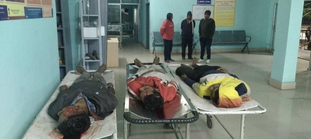 जानकारी के अनुसार घाटशिला थाना क्षेत्र के जगन्नाथपुर निवासी राहुल कर्मकार अपने दो सगे भाई रोहित कर्मकार व समीर कर्मकार एवं भागना राज गोप के साथ एक ही स्कूटर पर सवार होकर दिन के समय अपने ससुराल सूरदा गए थे। शुक्रवार की शाम संध्या लगभग सवा बजे वह एक ही स्कूटी पर सवार होकर सूरदा से अपने घर जगन्नाथपुर लौट रहे थे। इसी दौरान सड़क पर पहले से खराबी के कारण खड़ा हाइवा को अंधेरे के कारण नहीं देख पाए और चारों लोग हाइवा के अंदर घुस गए। घटना इतनी दर्दनाक थी कि घटनास्थल पर ही रोहित कर्मकार (21) समीर कर्मकार (18) एवं राज (17) की मौत हो गई। इसमें से रोहित कर्मकार और समीर कर्मकार दो सगे भाई हैं जबकि राज 17 भागना बताया जाता है। इस घटना में राहुल कर्मकार (26) वर्ष भी गंभीर रूप से घायल हो गया है। जिन्हें प्राथमिक उपचार के बाद बेहतर इलाज के लिए एमजीएम रेफर कर दिया गया है। घटना की जानकारी मिलने पर घाटशिला और मुसाबनी पुलिस मौके पर घाटशिला अनुमंडल अस्पताल पहुंचकर मामले की जानकारी लेने में जुट गई है। घटना के बाद अस्पताल में जगन्नाथपुर समेत आसपास के दर्जनों ग्रामीण पहुंच गए थे एवं मामले की जानकारी लेने में जुटे। बताया जाता कि रोहित कर्मकार एवं राहुल दोनों शादीशुदा है। यह दोनों घाटशिला क्षेत्र के विभिन्न जगहों में जाकर मकान में पुट्टी करने का काम करते थे।