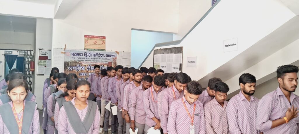 Patamda: पटमदा के डिग्री कॉलेज जाल्ला के एनएसएस यूनिट एक और दो के संयुक्त तत्वावधान में गुरूवार को कॉलेज में श्रद्धांजलि सभा आयोजित कर जम्मु कश्मीर के पहलगाम आतंकी हमले में मारे गए 26 लोगों को श्रद्धांजलि दी गई।