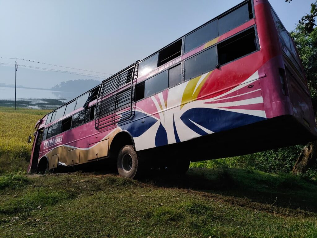 हलुदबनी ओपी के पास अनियंत्रित बस दुर्घटनाग्रस्त