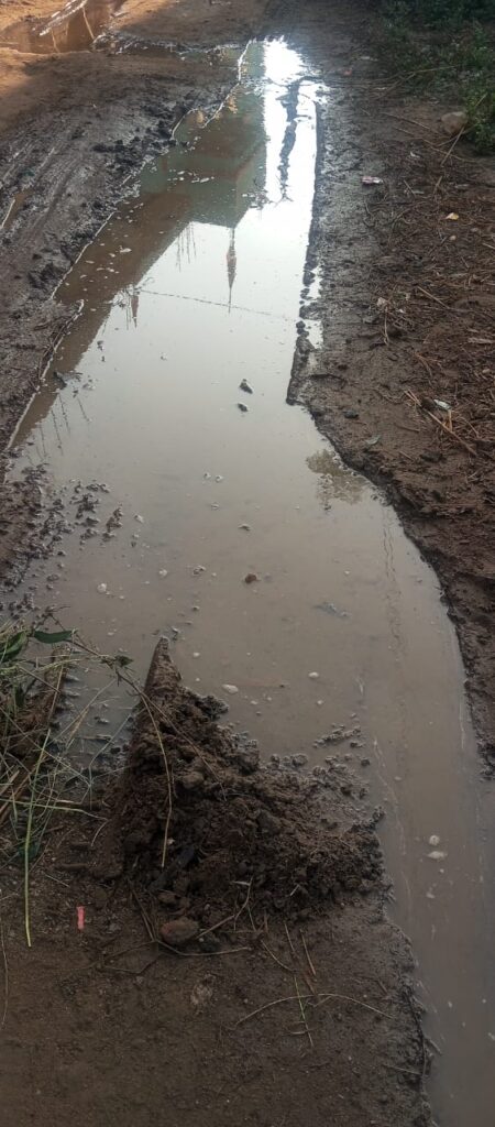 पटमदा के गोपालपुर गांव में गुरुवार को सड़क पर बहता पानी और उससे बने कीचड़मय हालात