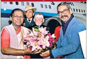 Jamshedpur : राष्ट्रपति द्रौपदी मुर्मु तीन दिवसीय झारखंड दौरे पर रविवार शाम करीब छह बजे रांची पहुंचीं। एयरपोर्ट पर राज्यपाल संतोष कुमार गंगवार एवं मुख्यमंत्री हेमंत सोरेन ने उनका स्वागत किया। राष्ट्रपति द्रौपदी मुर्मू सोमवार को जमशेदपुर के दो कार्यक्रमों में शामिल होंगीं। वे पहले करनडीह दिशोम जाहेर में आयोजित संथाली भाषा की ओल चिकी लिपि के अन्वेषण के शताब्दी वर्ष के समापन समारोह में शामिल होंगी।